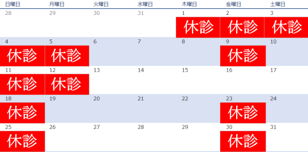 2026年1月休診日のお知らせ