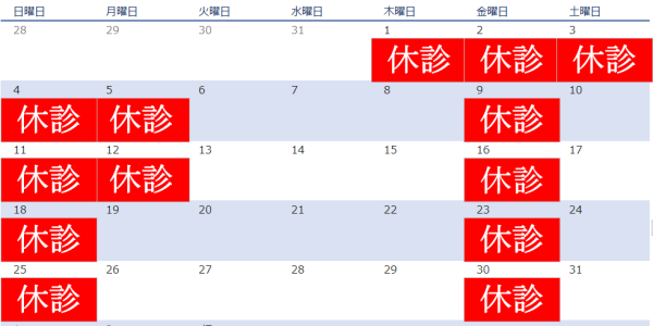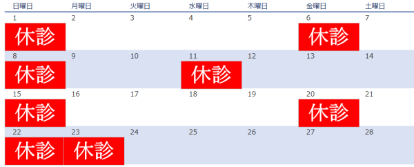 2026年2月休診日のお知らせ 前の記事へ Category お知らせ スタッフブログ 院長コラム Archive アーカイブを選択 2026年1月 2025年11月 2024年8月 2022年2月 2021年12月 2021年11月 2021年9月 2019年7月 2019年1月 2018年9月 2017年5月 2016年3月 2016年1月 Recent posts 2026.01.06 2026年2月休診日のお知らせ お知らせ 2025.11.03 2026年1月休診日のお知らせ お知らせ 2024.08.06 暑中お見舞い申し上げます お知らせ / スタッフブログ